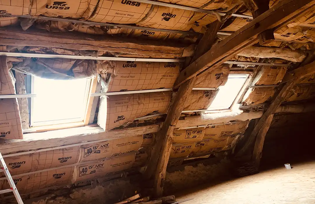 Les volumes ont ensuite été entièrement redistribués. De nouvelles cloisons ont été implantées afin de créer des logements indépendants, tout en optimisant la circulation et la luminosité. La configuration sous toiture a été exploitée intelligemment, dans la continuité de notre savoir-faire en transformation de combles en surface habitable, afin de valoriser chaque mètre carré disponible.